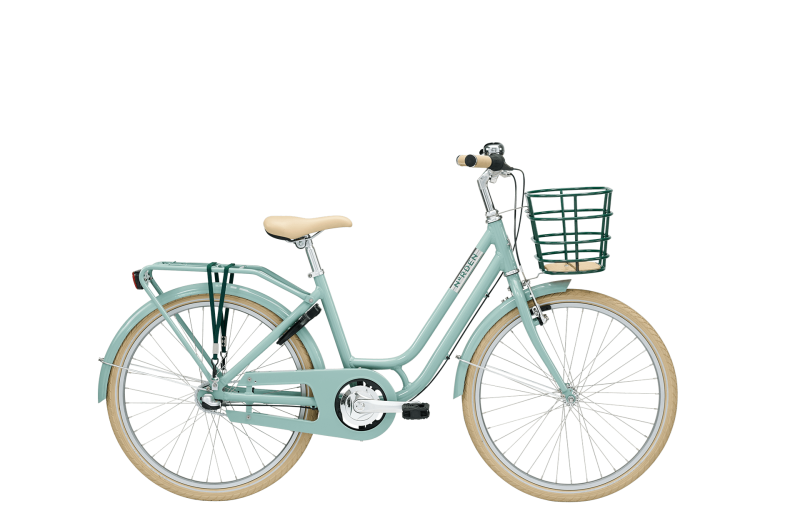 Leveres med kurv, bagagebærer + strop, støtteben, retroklokke og DVN godkendt lås.