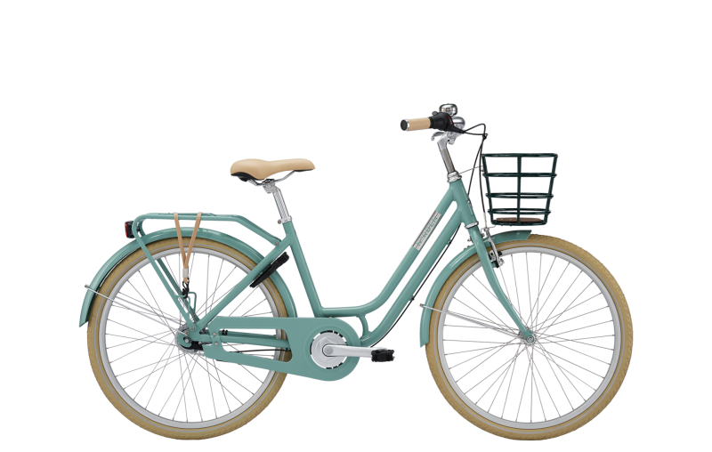 Stel i aluminium, komfortsadel, eksklusive Norden håndtag, kædeskærm i cyklens lakering samt smart og praktisk cykelkurv/bagagestrop gør Clara unik. Du får 7 indvendige Shimano-gear samt fodbremse, og V-bremse for.