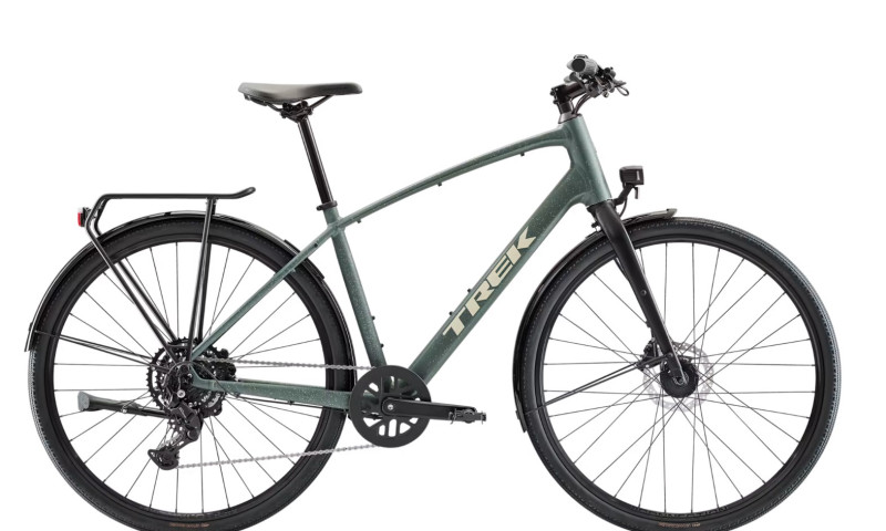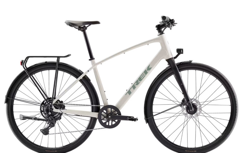 Trek FX Sport AL Equipped er en sikker hybridcykel med god ydeevne, som er sjov på alt fra landevej til nedlagte jernbanespor og meget mere. Den har et let stel, en robust geargruppe og masser af praktisk udstyr, bl.a. bagagebærer og lygter. Dens brede hjul og høje dæk opsuger bump og ujævnt terræn, hvilket giver komfortabel, sikker cykling på asfalt, lette grusveje og spor, cykelstier og meget mere.