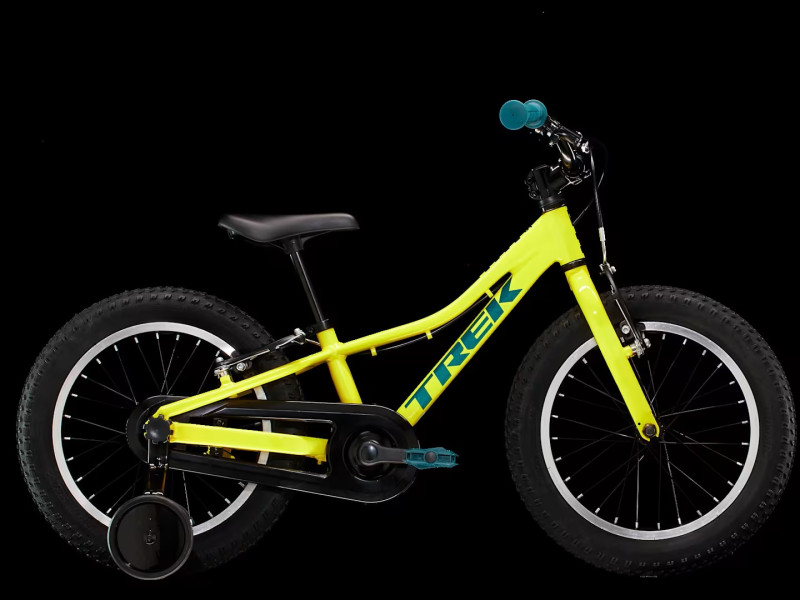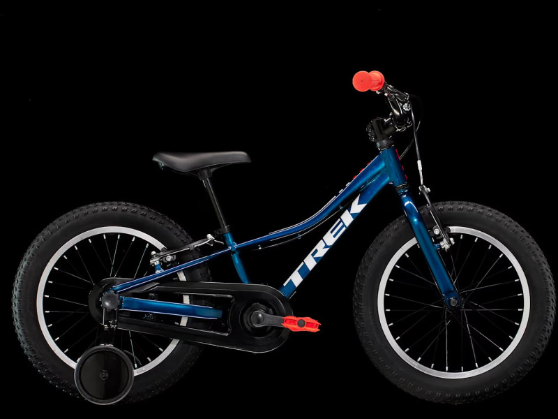 Trek Precaliber 16" Super sød og sej 16" cykel tul de mindste fra Trek der gør det nemt og sjovt for børn at lære at cykle. Cyklen er uden gear og har to håndbremser, så dit barn kan vænne sig til at bruge bremsegreb. Den har også et håndtag indbygget i sadlen, så du kan hjælpe dit barn med at cykle. Desuden har den støttehjul, som er nemme at montere og afmontere uden brug af værktøj.