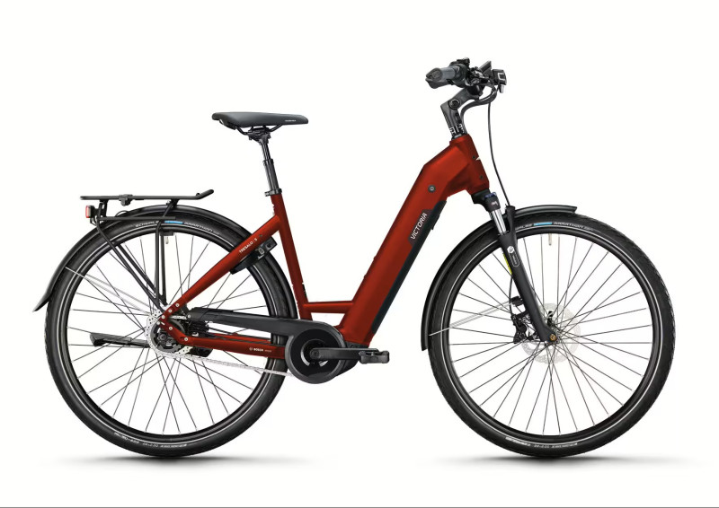 Victoria Tresalo 5. Cyklen er udstyret med et aluminiumsstel og har 28" hjul. Den drives af et kædedrev, som understøttes af BOSCH Performance Line centermotor. Rammen indeholder et batteri med en kapacitet på 540,0 Wh. Shimano 5 gearnav m. fodbremse Fjedergaffelen har en vandring på 63 mm. Den tilladte totalvægt er 140 kg, og udstyret omfatter skærme og kædebeskyttelse.